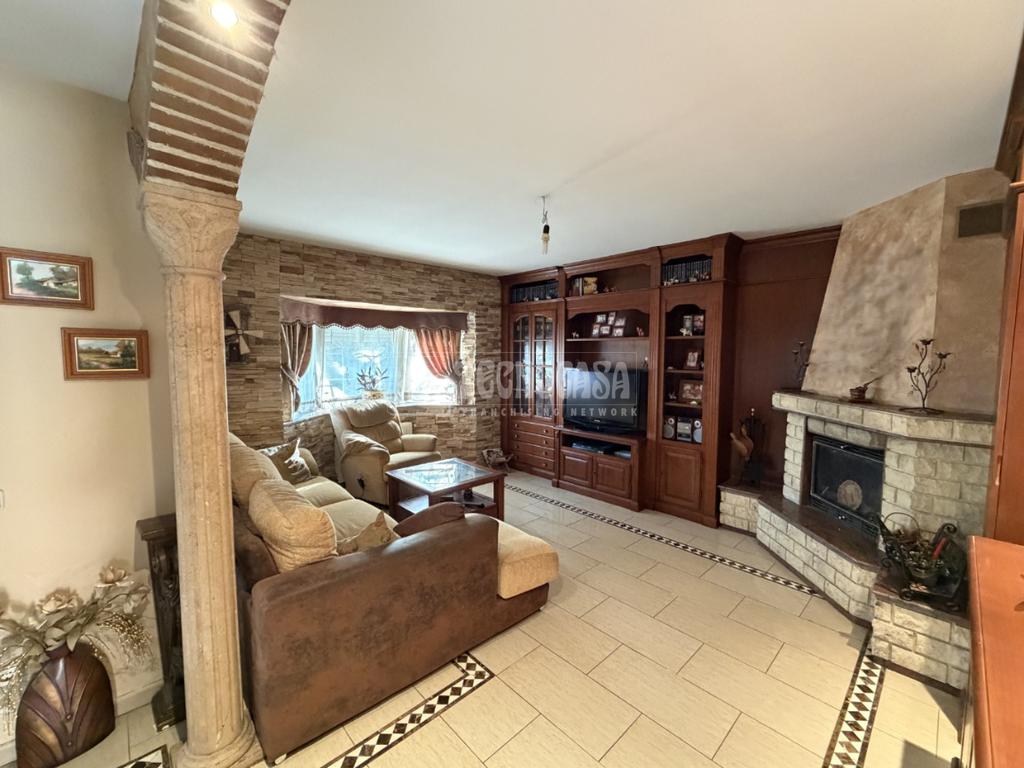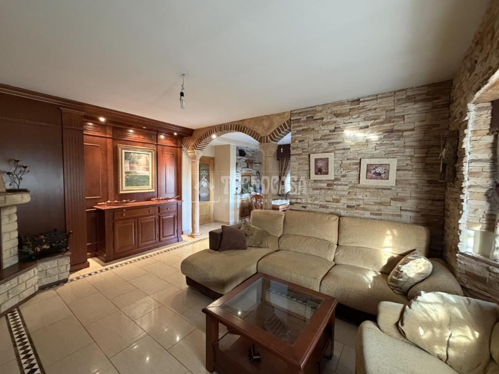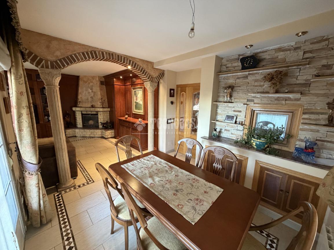 La planta principal está compuesta por un gran salón-comedor con chimenea, espacio ideal para hacer la vida familiar, un cocina con muebles altos y bajos con espacio suficiente para disponer de una mesa para 6 personas y acceso directo desde el jardín,1 dormitorio doble y un baño completo con ventana. Todas las estancias cuentan con ventanas climalit correderas, radiadores y puertas laminadas en roble.